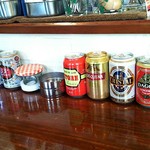 カフェ ハピネス - なぜかカウンターには色々な缶ビールが並んでました